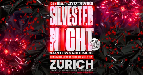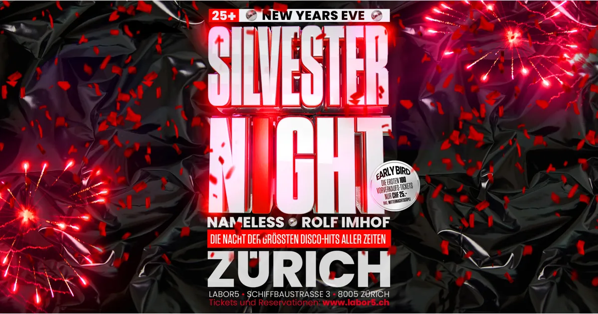Das ist die grosse Silvester Party für alle ab 25 Jahren. Die besten Disco Hits aus den letzten 5 Jahrzehnten mit den beiden Dj’s Rolf Imhof & Dj Nameless hinter den Decks. Dich erwartet ein unvergesslicher Jahreswechsel in einer einzigartigen urbanen Location. Um Mitternacht stossen wir mit einem Glas Sekt an – dieser ist im Eintritt inbegriffen....
